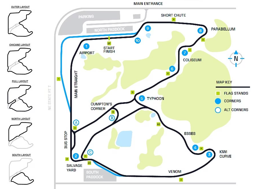 First up is Hedge Hollow. Located in Missouri, just south of Kansas City, Hedge Hollow Raceway is a big and fast course. The full course is 3.4 miles long, featuring two fast “straights”, an increasing speed esses section, and a technical final couple corners.